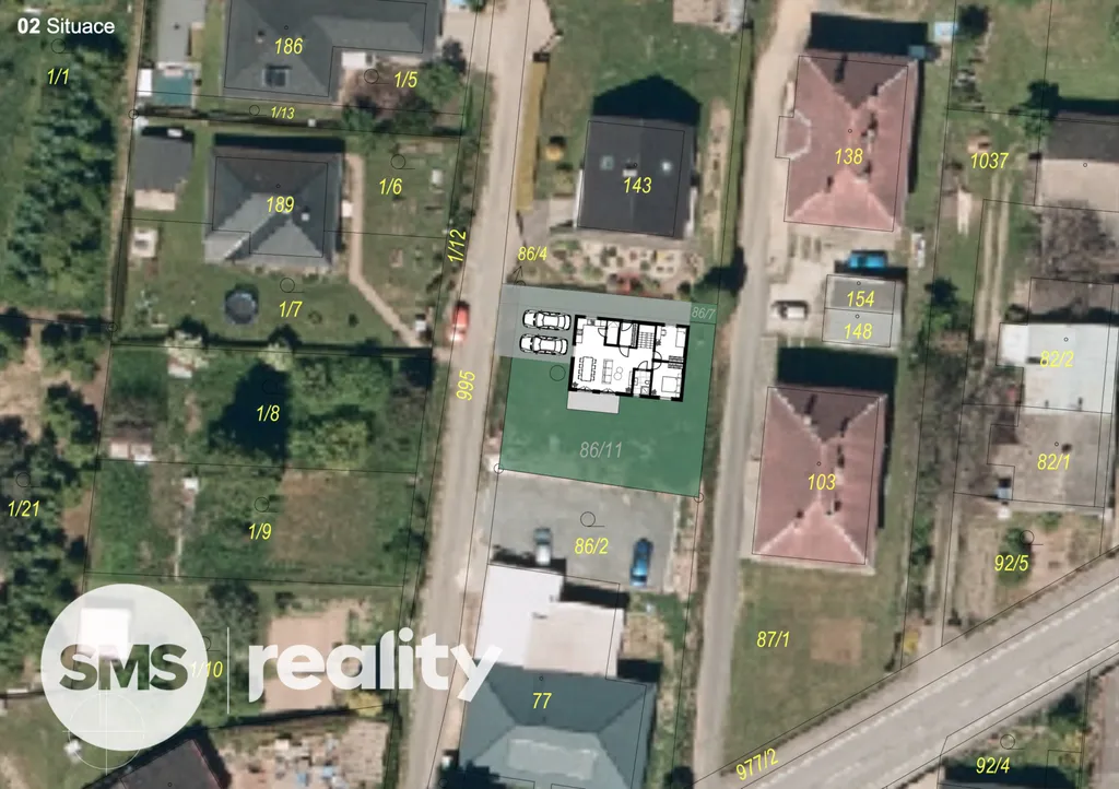 Ve spolupráci se stavební firmou MUDUM je pro pozemek zpracována situace a studie rodinného domu o dispozici 5+kk s užitnou plochou 122 m².