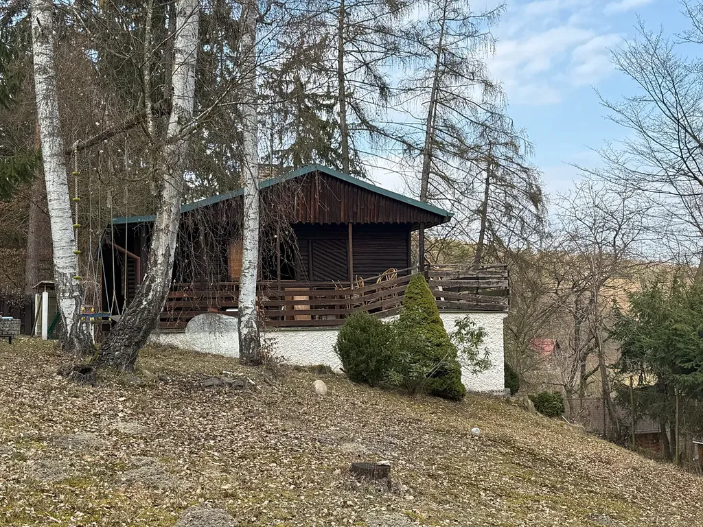 K prodeji nabízím dřevěnou krásnou chatu s číslem evidenčním, vlastní studnou a nádherným výhledem na údolí Vltavy, postavené na mírně svažitém vlastním pozemku o celkové výměře 740 m2, nacházející se na kraji obce Třebenice u obce Slapy. Chata se nachází na kraji lesa.