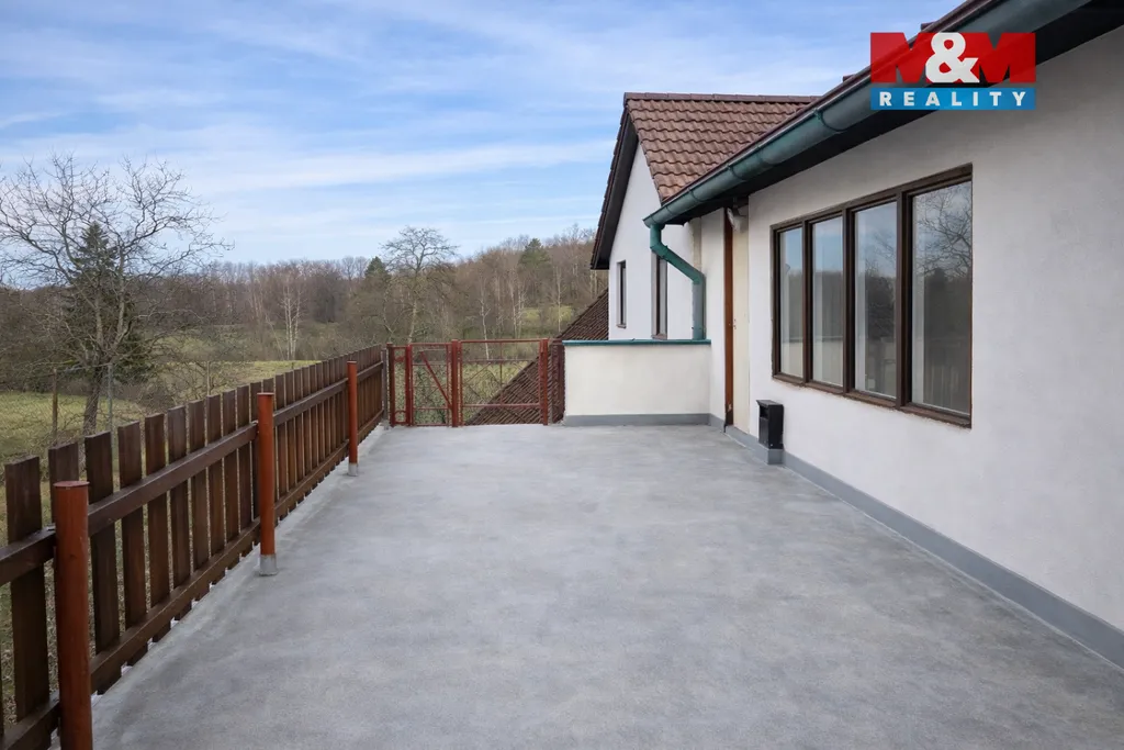 Benefitem je rozlehlá terasa, ideální pro letní posezení, grilování i klidná rána s výhledem do zeleně. Dům má vlastní studnu a je obklopen zahradami, které poskytují dostatek prostoru pro relax.