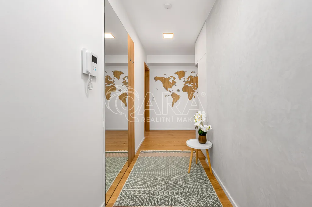 Byt je vzhledem ke svému umístění a velkému počtu oken prosvětlený a disponuje vším, co potřebujete. To se týká i vybavení, nemusíte tedy řešit žádné další investice. Kromě plně vybavené kuchyňské linky s vinotékou a nábytku také oceníte veškeré elektrospotřebiče a nástroje pro ovládání chytré domácnosti.
