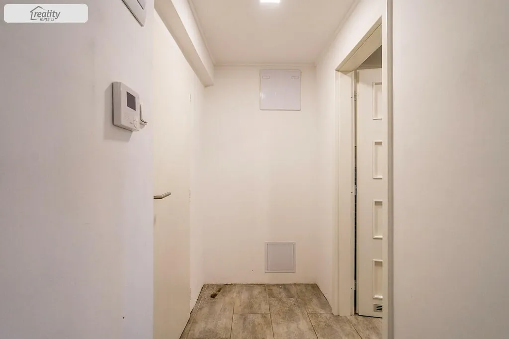 Dispozice bytu zahrnuje vstupní předsíň, samostatnou kuchyni, obývací pokoj, ložnici a koupelnu se sprchovým koutem a WC. Pokoje jsou průchozí. Byt prošel kompletní renovací – je vybaven novými špaletovými okny, dřevěnými parketami v obytných místnostech a dlažbou v kuchyni a koupelně. Vytápění zajišťuje kombinovaný plynový kotel. V koupelně je k dispozici prostor pro pračku a dvojité umyvadlo. Kuchyň je plně vybavena spotřebiči: myčka nádobí, lednice, indukční varná deska a trouba.