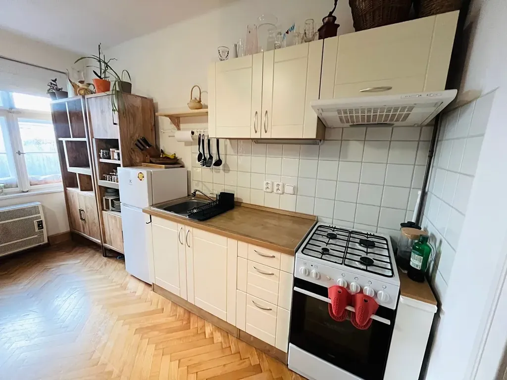 Pronájem bytu 2+kk s výklenkem v rodinné vilce v krásné lokalitě Keilova vrchu nedaleko centra. V domě jsou 3 byty. Nabízený byt je ve 2 patře. Před bytem je úložný prostor na boty. Po vstupu do bytu je v předsíni vestavěná skříň a místo na pračku. Na jedné straně bytu je ložnice a za ložnicí je koupelna s vanou a WC. Na druhé straně bytu je větší místnost s výklenkem a zde je kuchyňská linka s kombinovaným elektrickým sporákem. V hlavní obytné místnosti jsou parketové podlahy, v celém bytě dveře s dřevěnými obložkami. Z hlavní obytné místnosti je výhled do zeleně a na Ještěd. V hlavní místnosti je plynové vytápění. V koupelně je elektrický žebřík. Po dohodě se současným nájemníkem je možnost odkoupení i vybavení v bytě.