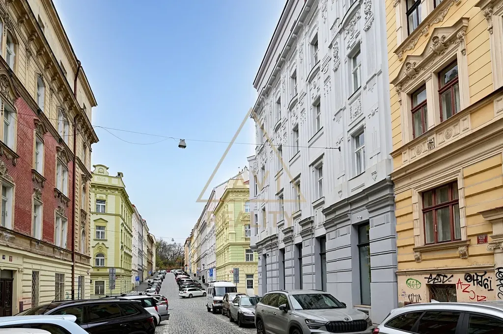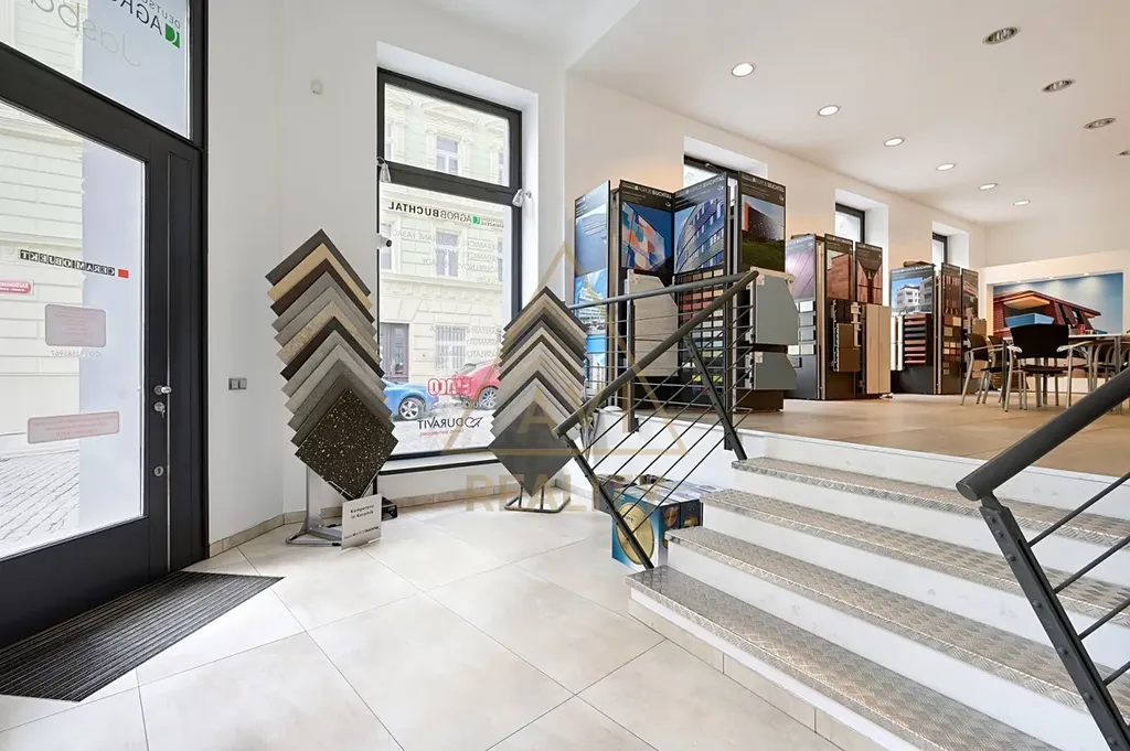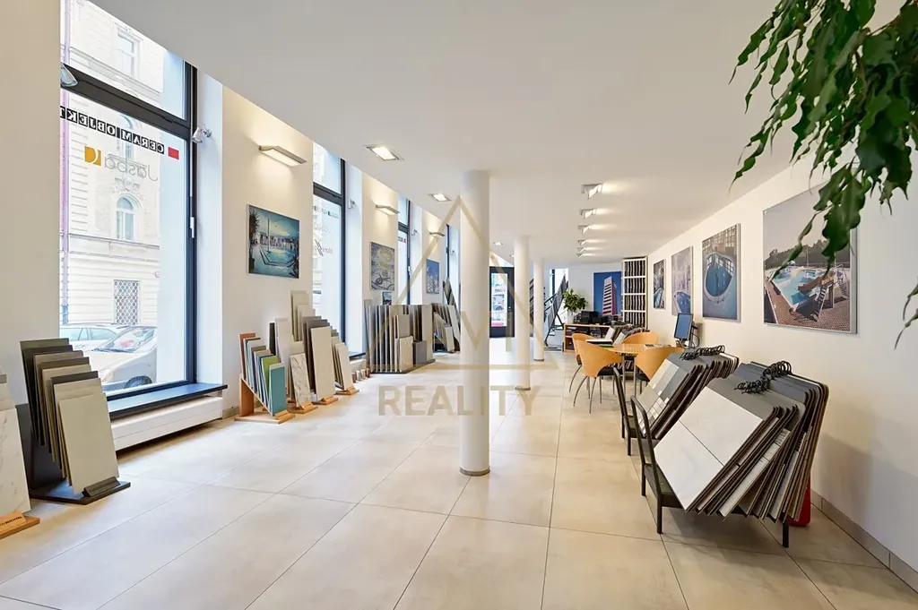 Nebytový prostor v přízemí s přímým vstupem z ulice a prosklenými výlohami je ideální pro gastro provoz, showroom či studio.