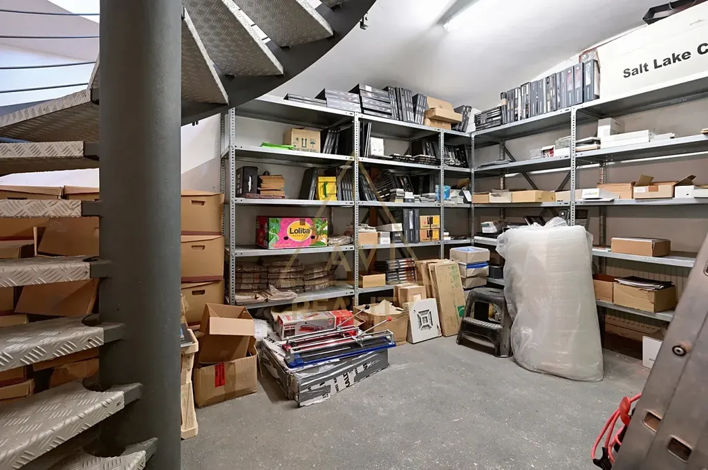 Součástí je samostatná místnost vhodná pro kuchyň, navazující sklad se vstupem z chodby a kompletní sociální zázemí (WC, výlevka, kuchyňka). Prostor zaujme elegantním designem, kamennou dlažbou a točitým schodištěm propojujícím tři úrovně.