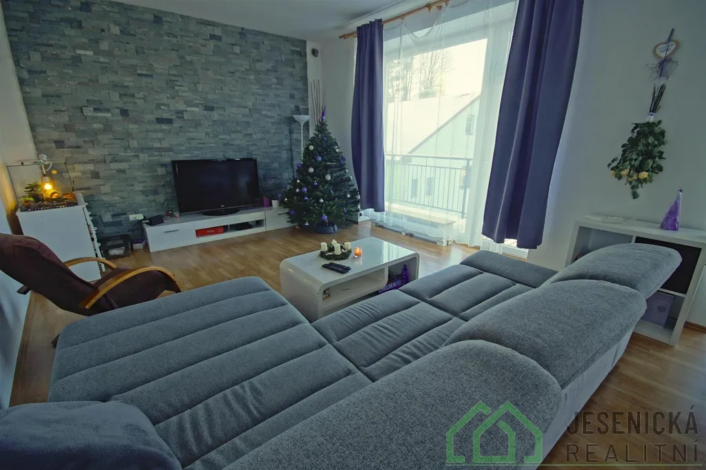 Realitní kancelář jesenická realitní nabízí v zastoupení majitele k pronájmu slunný, nově zrekonstruovaný zateplený byt 2 + KK + krytá lodžie o velikosti 74,01m2 (obývací pokoj s KK 36,11 m2, pokoj 10,61 m2, předsíň 9,73 m2, koupelna s WC se sprchovým koutem, bidetovým prkénkem a automatickou pračkou 4,76 m2 a krytá lodžie 12,80 m2) s orientací JZ do zahrady.