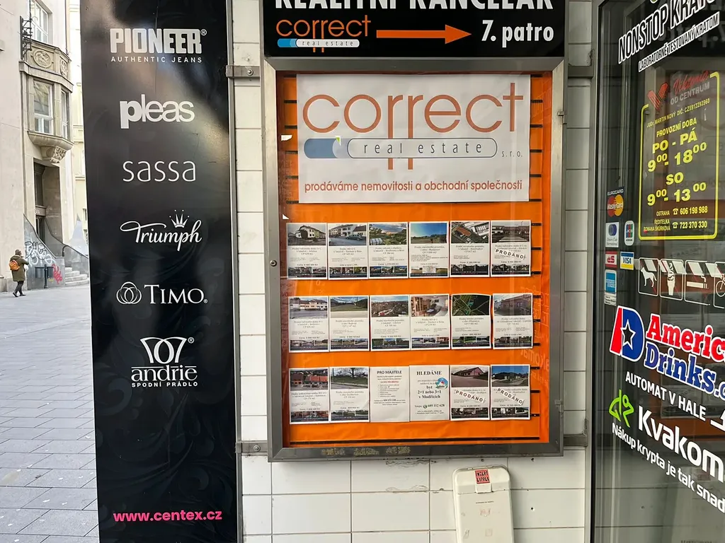 Nájemce nabízí možnost odkoupení stávajícího kancelářského nábytku. Pro zájemce je k dispozici také pronájem prosklené nerezové vitrínky u vstupu z ulice Kobližná.