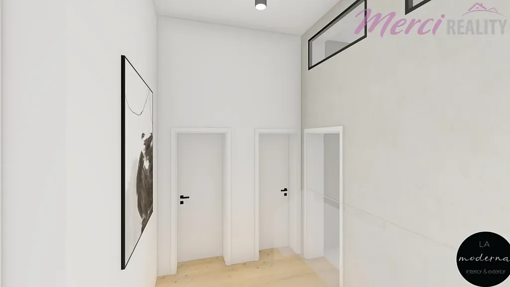 Hledáte nové nadstandardní bydlení v okolí Uherského Hradiště? Pokud nechcete dlouze čekat na koupě vhodného pozemku a řešit projekt se stavebním povolením, tak tu máme něco právě pro Vás. Nabízíme Vám hrubou stavbu rodinného domu s dispozicí 4+kk s terasou 50m2 ve městě Kunovice v ulici Na Samotě. Částečně podsklepený dům je postaven velmi kvalitně z betonových tvárnic. Z levé strany domu je vjezd do garáže, kde se také počítá s prostorem na vinný sklípek s posezením. Příjemné je také, že garáž má přístup schody přímo do domu. Kolem domu je postavený betonový plot, který čeká už jen na fasádní barvu a vstupní bránu na dálkové ovládání. Zastavěná plocha tohoto domu je 199,5 m2 + terasa 50m2. Vytápění domu bylo navrhnuto plynem, který je již přiveden přímo k domu. Samozřejmě je na novém majiteli jaké si zvolí vytápění. V obývacím pokoji se také počítalo nejen pro příjemnou atmosféru, ale i s náhradním vytápěním se spuštěným prostorovým krbem. Část střechy domu je téměř rovná a druhá část je střecha valbová. Střecha je pokryta trapézovým plechem o tloušťce 1,1mm. Kromě napojení domu na obecný vodovod, je také na předzahrádce k užívání studna. V přední části domu jsou dva pokoje umístěné naproti sobě pro absolutní soukromí. Z pokoje v pravé části domu se může vstoupit na dvůr z boční strany. Z druhého pokoje se zase vstupuje na menší terasu. Přes vstupní halu dále je chodba, koupelna s WC, technická místnost, prostorná kuchyň s jídelním koutem 38m2 a spolu s obývacím pokojem má dohromady 55m2. Z kuchyně a z obývací části domu je vstup na terasu a zahradu. Do ložnice 18,2 m2 se vchází také z obývacího pokoje a u ložnice je také připravený prostor na koupelnu s WC. Připravili jsme si pro Vás vizualizaci exteriéru i interiéru pro představu, jak by dům mohl po dokončení vypadat. Výhodou domu v hrubé stavbě je, že je ve stavu, kdy si můžete upravit, navrhnout a vybavit již vše dle Vašeho vkusu.