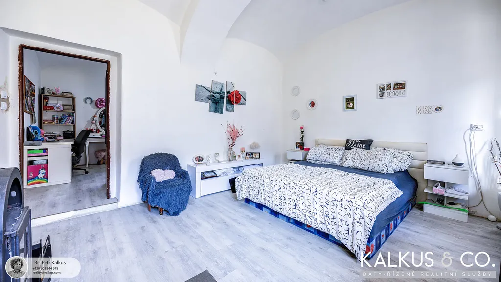 Hlavní obytná budova má aktuální dispozici 4+1 a podlahovou plochu přibližně 112 m². Dům je trvale obýván, částečně podsklepen (kotel na tuhá paliva) a udržovaný. Okna jsou původní dřevěná špaletová, podlahy tvoří plovoucí laminát. Půda je vyklizena a připravena k dalšímu využití. Dvě krajní místnosti a jedna navazující (cca 30 m², přístupná zatím pouze z nádvoří) mají klenuté stropy.