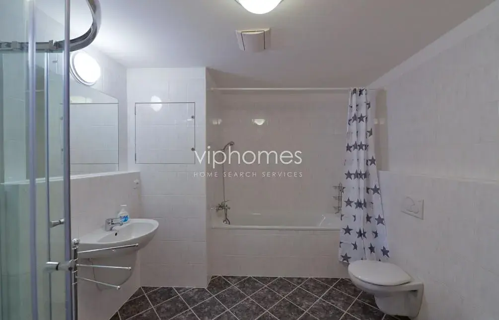 Byt se nabízí kompletně zařízený a sestává z předsíně, obývacího pokoje s plně zařízeným kuchyňským koutem, 2 ložnic, koupelny s vanou a WC, komory. Z obývacího pokoje je vstup na terasu. Plynové topení (samostatné měření spotřeby tepla, vody a elektřiny), bezpečnostní dveře, parkety, domácí telefon s ovládáním domovních dveří, přenos videosignálu od vstupů do budovy na obrazovku TV. Služby :recepce, video sledování od vstupů do budovy na obrazovku TV.