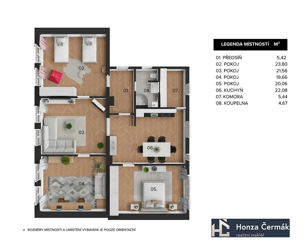 V případě více zájemců bude nemovitost prodána nejlepší nabídce a prodávající si vyhrazuje právo vybrat kupujícího na základě jim zvolených kritérií. Uvedené rozměry jsou orientační. Veškeré zveřejněné údaje obsažené v tomto inzerátu mají pouze informativní charakter a nejsou nabídkou ve smyslu § 1731 nebo § 1732 občanského zákoníku, ani se nejedná o veřejný příslib dle § 1733 občanského zákoníku. Z této nabídky tak nikomu nevzniká nárok na uzavření s