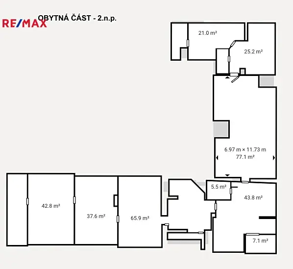 Výměry: obytná část RD: 185,70 m2, sklepy: 32,47 m2 (jeden 13,77 m2, druhý 18,70 m2), podkroví: 277 m2, nebytové prostory s kotelnou:14,70 m2, bazén: 63 m2, nebytové prostory (černá kuchyně a komora):33,50 m2, dvou garáže: 127,50 m2 (jedna 52,95 m2, druhá 74,55 m2), zastavěná plocha: 1047 m2, plocha zahrad a ostatní plochy: 1769 m2, celková plocha všech pozemků: 2816 m2.