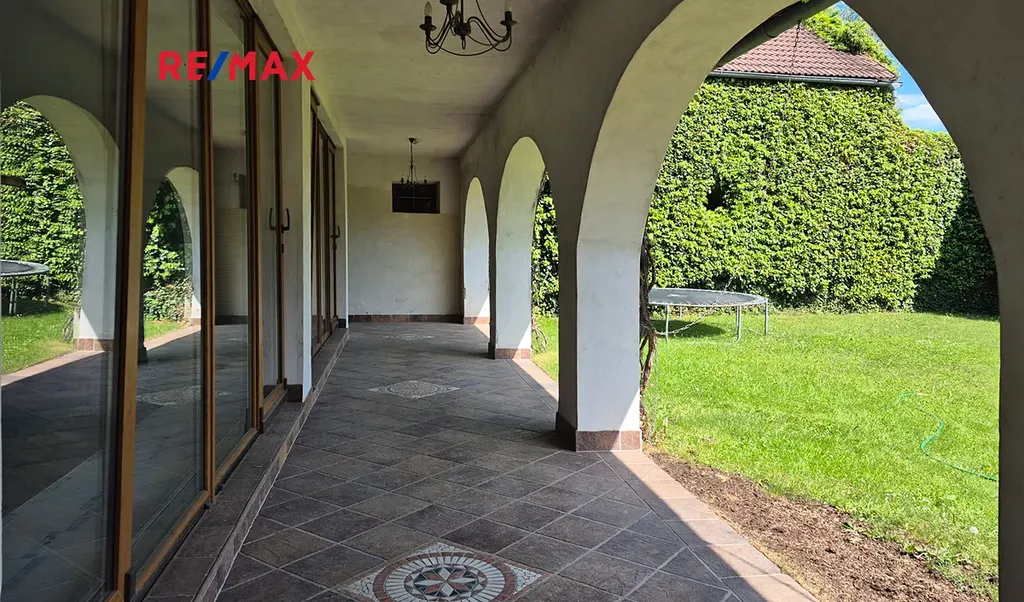 Z obytné části se dá vejít do dvora, kde se nachází nebyt. část s kotelnou, WC a umyvadlem. Dvůr je uzavřený, nachází se zde zastřešené podloubí (42,70 m2) podél celé délky vnitřního bazénu, do kterého je vstup ze dvora prosklenými posuvnými dveřmi. Bazén je plně funkční. Na stavbu bazénu navazují další nebyt. prostory, a to: černá kuchyně, ve které se nachází kamna na TP, el. sporák a je zde zavedený přívod SV i TV, dále komora a dvě velké garáže. Na uzavřeném dvorku se dále nachází zastřešený přístřešek 8,30 m2 s posezením u krbu, udírny a pecí na pizzu. Zahrada za domem je pravidelně a krásně udržovaná.