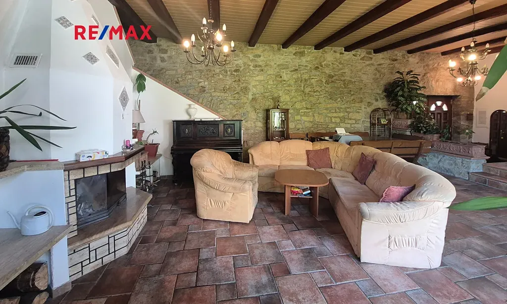 Nad celou obytnou částí a bazénem je připravené podkroví na využití dalších obyt. místností. Místnosti jsou již zateplené, s rozvody elektřiny, se stěnami, v některých je již hotová podlaha. Dokončená je část se soc. zař.: masážní vana, WC a dvě umyvadla a plně funkční krb. Celý pozemek je oplocený a nabízí naprosté soukromí.