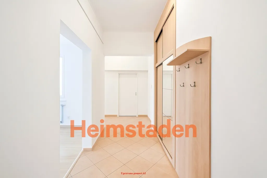 Byt má chytře upravenou dispozici – koupelna je spojená s toaletou a nabízí velký sprchový kout v jemných pastelových tónech, které vytvářejí příjemnou, klidnou atmosféru. Kuchyně byla zvětšena a poskytuje opravdu hodně prostoru, navíc s otevřenou komorou a přípojkou na pračku, takže praktičnost tu hraje hlavní roli. Kuchyňská linka ve světlém dřevodekoru je nadčasová a krásně ladí s lesklou světlou dlažbou, která pokračuje i v předsíni.