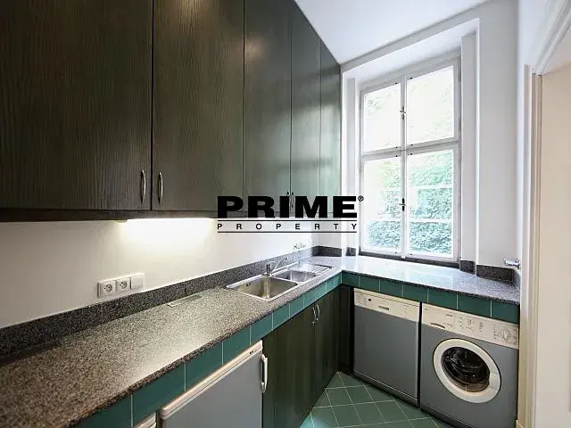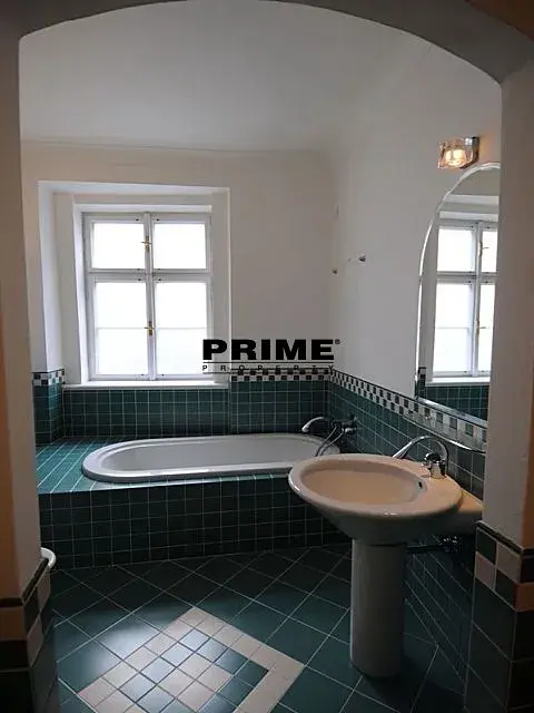 Prostorný, 3 ložnicový, nezařízený byt se 2 koupelnami k pronájmu, 4+1, 178m2, s jižně orientovanou terasou o výměře 35m2, situovaný ve 2. patře kompletně zrenovovaného historického domu s výtahem a malebným zeleným nádvořím s fontánami.