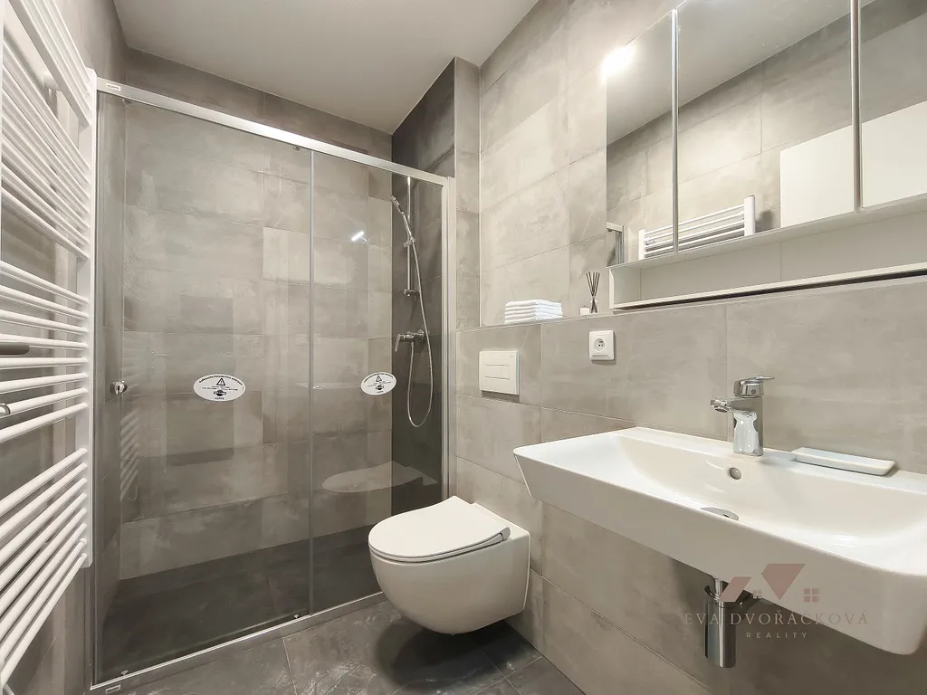Byt je částečně vybavený, takže se můžete okamžitě nastěhovat a zároveň si jej doladit podle svého stylu. K dispozici je kuchyňská linka s úložným prostorem až ke stropu a přípravou pro myčku, vestavěnou horkovzdušnou troubou s grilem, sklokeramickou varnou deskou, mikrovlnkou a lednicí s mrazákem. Pro Váš maximální komfort je byt vybaven klimatizací a podlahovým topením. Také je možnost odkoupit od bývalých nájemníků postel vč. roštu za 9.500 Kč a šatní skříň za 4.000 Kč. Přidejte vlastní doplňky a vytvořte si domov, ve kterém se budete cítit skvěle. A to není vše... Součástí bytu je také prostorná terasa o celkové ploše 4,8 m² se stolkem a židlemi, na které si můžete vychutnat ranní kávu s výhledem na hrad, dobře přístupný menší zděný sklep, kde je velkou výhodou možnost dobíjení moderních elektrokoloběžek, elektrokol či elektrických skútrů a vlastní parkovací místo kousek od domu, což výrazně zvyšuje pohodlí bydlení.