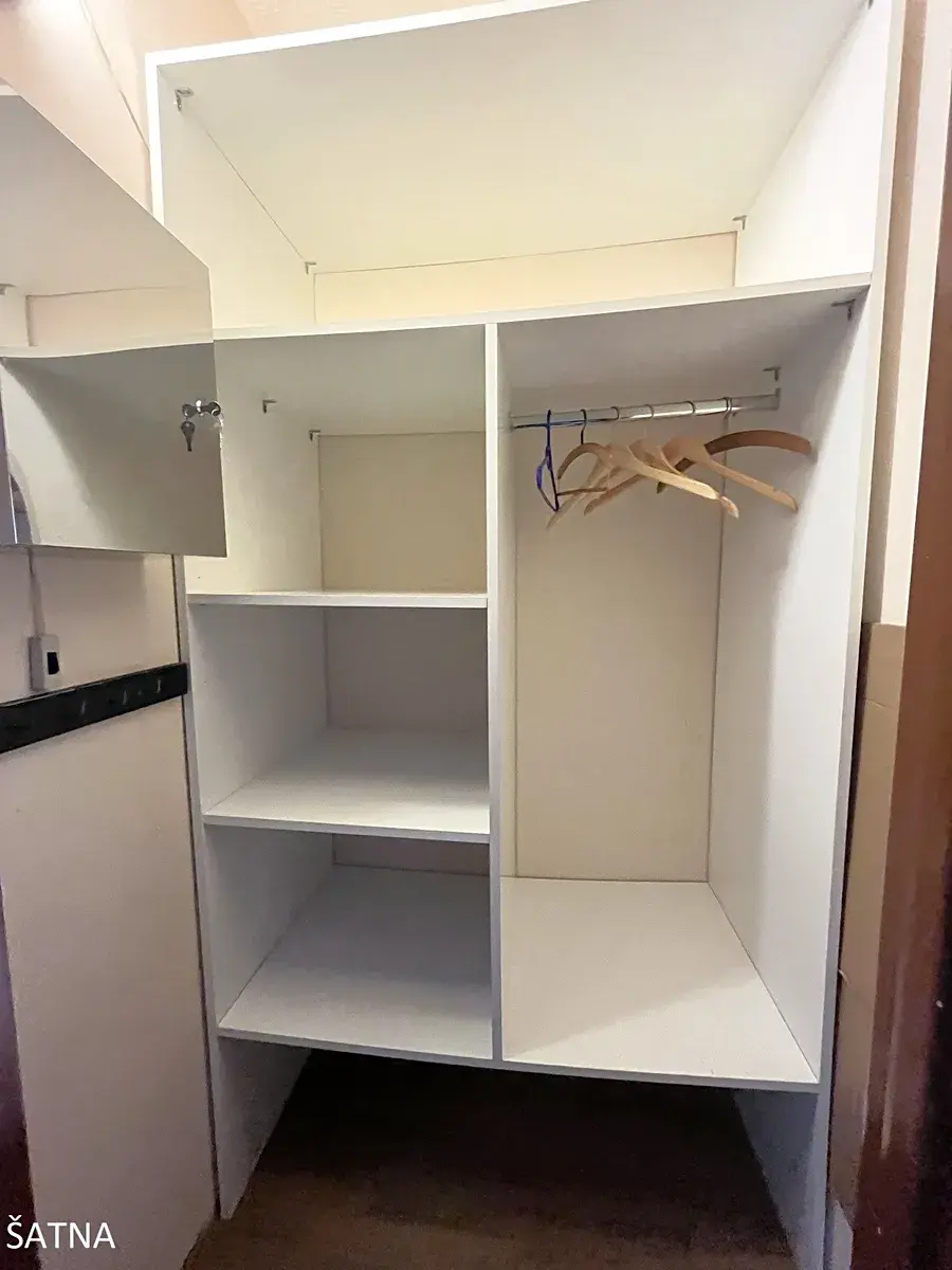 Nabízíme k pronájmu samostatný menší, kompletně zařízený pokoj o výměře cca 8m2 s vlastní malou šatnou hned vedle vchodu.