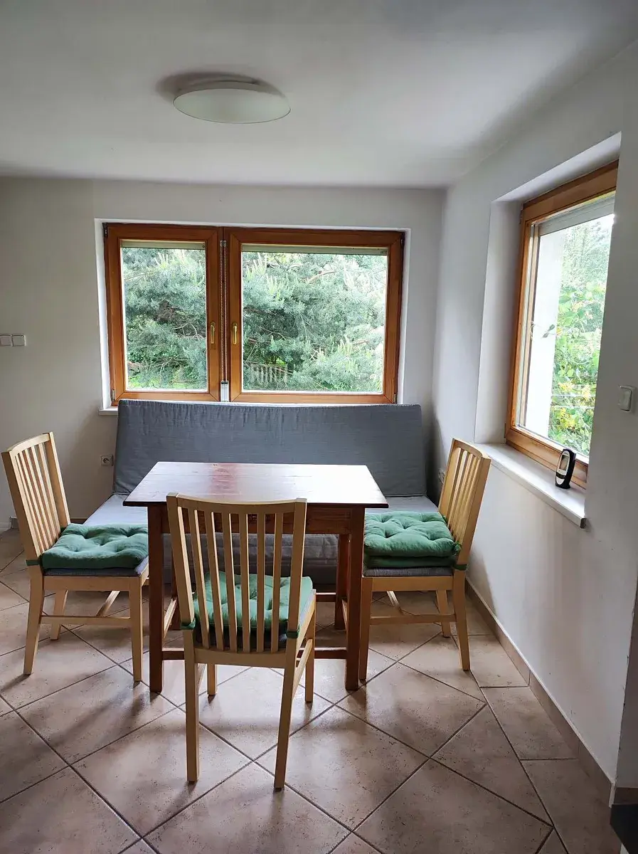 Nabízíme k pronájmu celoročně obyvatelnou zděnou chatu (menší dům) s překrásnou vlastní zahradou o výměře 540m2. K domu náleží vlastní parkovací stání. Domek má vlastní vodoměr a elektroměr. Topení krbem na tuhá paliva, ohřev vody je řešen elektrickým bojlerem.