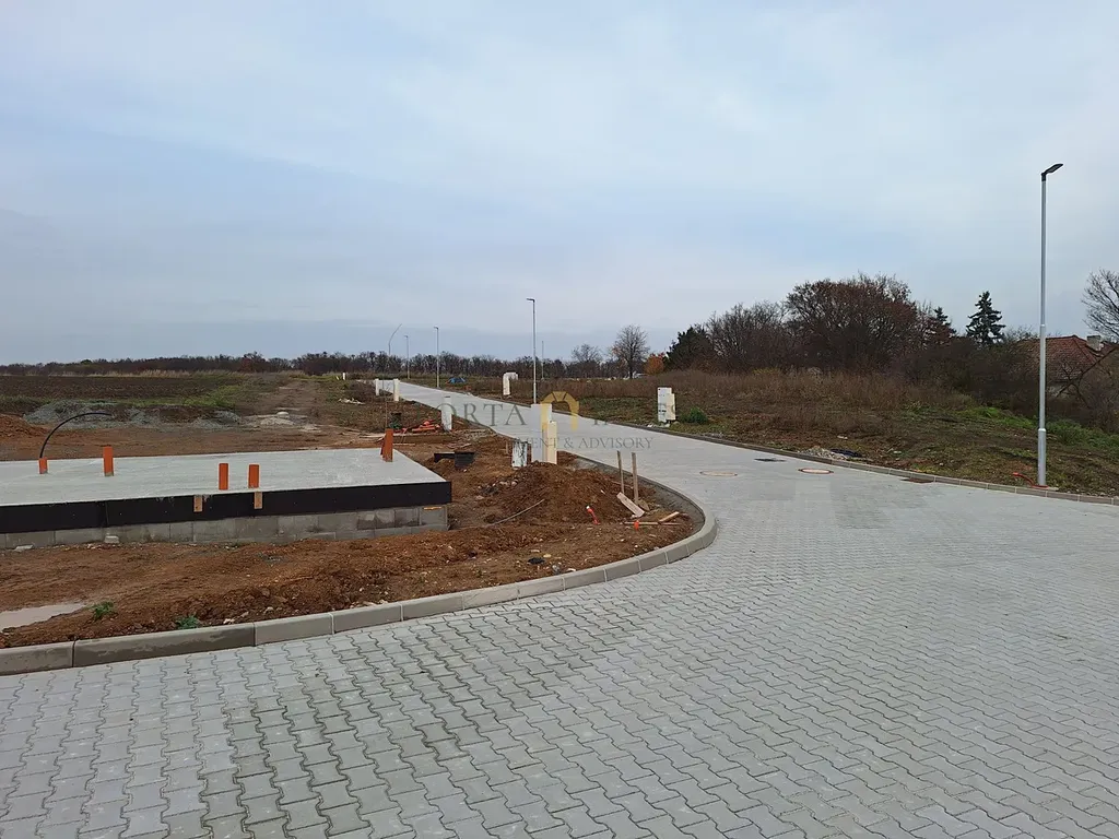 Jedná se o krásný rovinatý pozemek situovaný na úžasném místě na kopci při severním okraji obce nedaleko lesa. Celková výměra pozemků činí 10.466 m2, přičemž dle projektu a katastru je tento rozdělen na 12 stavebních parcel s čistou prodejní plochou 8.782 m2, zbytek připadá na komunikaci. Parcely mají výměru 436 m2 – 1.189 m2. K projektu jsou veškerá povolení jak na sítě, tak na domy. Aktuálně jsou již dokončeny práce na budování sítí a komunikace a je dokončena jedna základová deska.