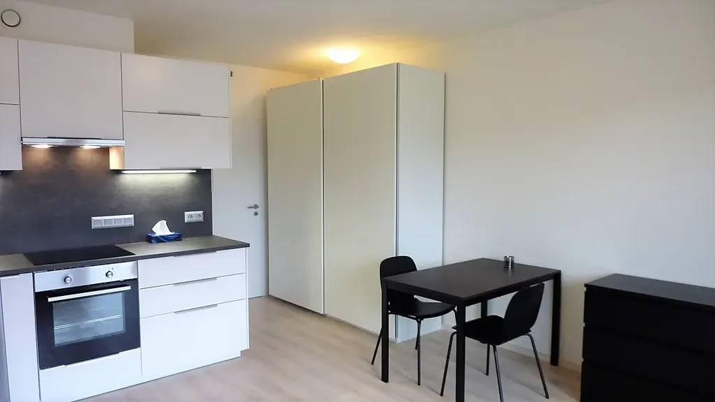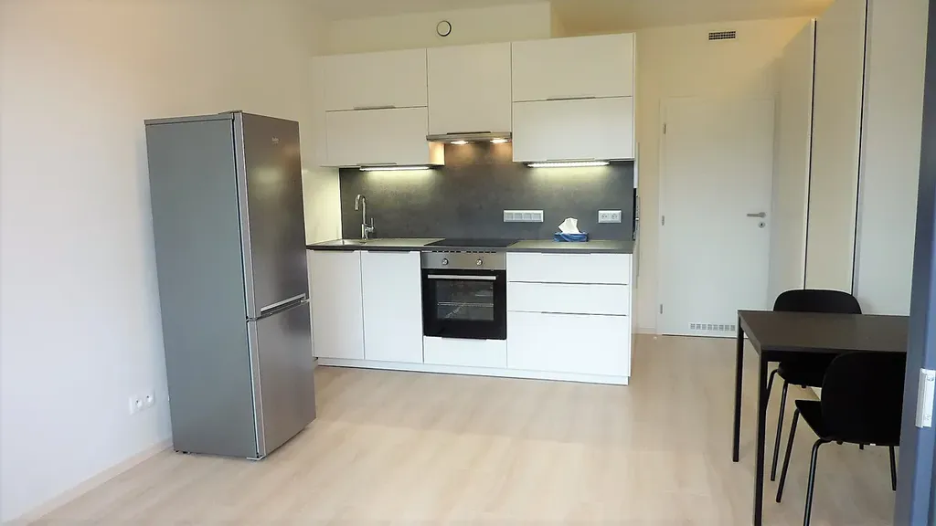 Exkluzivně nabízíme k pronájmu byt 1+kk ve 4.patře cihlového domu v ul. Šífařská, v nově vybudovaném komplexu Rezidence Hodkovičky. V případě zájmu je možné si pronajmout i garážové stání ( cena 1.500,- Kč) Dispozičně je byt řešen jako 1+kk s balkonem. Majitelům se v rámci vybavení podařilo prostor maximálně vytěžit. Kuchyňská linka je vybavena veškerými vestavnými spotřebiči ( indukce, digestoř, myčka, trouba, mikrovlnná trouba), k dispozici je i samostatně stojící lednice s mrazákem. Kuchyň je zajímavě řešena a skýtá velké množství úložných prostor. Pokoj ( 22,6m2) s kk je dále vybaven - dvojdílná skříň, stůl a 2 židle. Koupelna a WC ( 4,4m2) jsou společné. Předsíň (3,1m2) je také vybavena skříní a odkládací stěnou s botníkem. Rezidence Hodkovičky nabízí vysoký standard, například plovoucí laminátové podlahy, plastová okna s šestikomorovým profilem či protipožární vstupní dveře 3. bezpečnostní třídy. Všechny byty jsou vybaveny také rekuperací, díky které je v domácnosti zajištěn stálý přísun čerstvého vzduchu. Ten je filtrován a ohříván teplem odcházejícího vzduchu. V každém bytě je tedy zajištěno zdravé větrání bez zbytečných tepelných ztrát. Dalším zajímavým a užitečným prvkem jsou venkovní žaluzie. Byt je orientován na západ a z balkonu je opravdu nádherný výhled. Pokud hledáte byt s dobrou dopravní dostupností, plně zajištěnou občanskou vybaveností a možností sportovního vyžití v těsné blízkosti, je tohle ta správná volba. V okolí je spousta cyklostezek, nedaleko golfové hřiště a spousta jiných sportovišť. K nastěhování ihned.