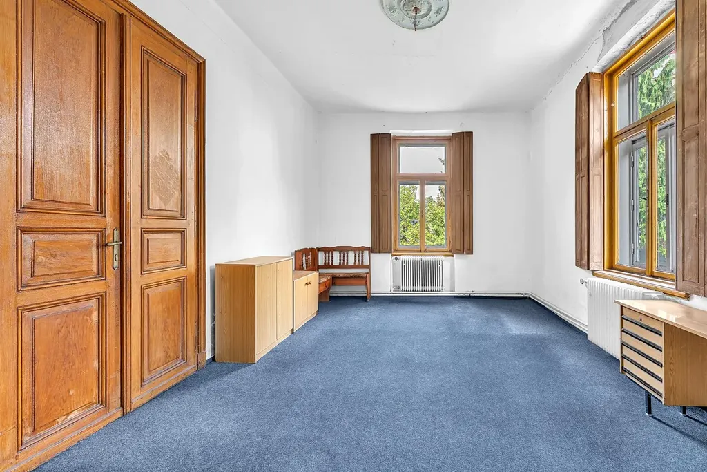 K prodeji prvorepubliková vila z roku 1912 v obci Žamberk, stojící poblíž náměstí, na nároží ulic Nádražní a 28. října. Po rekonstrukci vila nabídne ideální místo pro bydlení i podnikání. Hlavní vstup je orientován do ulice Nádražní, přístup je řešen také z ulice U Divadla. Stavba nabízí zajímavé dispoziční uspořádání, jedno nadzemní podlaží a částečně využité podkroví. Dům je celopodsklepený, disponuje zastavěnou plochou 175 m2 a velkorysou užitnou plochou 320 m2. Vilu obklopuje zahrada o výměře 380 m2. Interiéru dominuje vzdušná vstupní hala s širokým schodištěm. V přízemí najdeme 4 prostorné pokoje a příslušenství v podobě komory a toalety. Rovněž z přízemí je vstup do jedné zahrady. V podkroví se nachází 2 pokoje, kuchyňský kout, koupelna s toaletou a další půdní prostory vhodné k vestavbě. Dům je napojen na veřejný vodovod, kanalizaci a elektřinu. Centrální vytápění domu zajišťoval kotel na tuhá paliva a krbová kamna. Parkování je k dispozici na obecních plochách u domu. Poblíž je pošta, městský úřad, školy, autobusové nádraží, obchody a veškeré služby. Doporučuji prohlídku vzhledem k lokalitě a ojedinělé nabídce podobného charakteru.