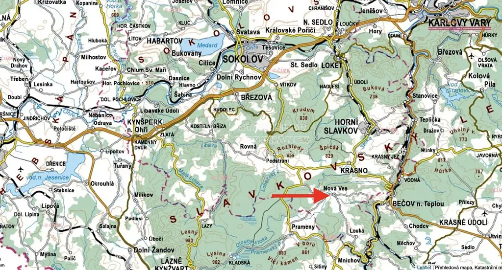 Ke koupi jsou Vám k dispozici pozemky o celkové ploše 6642 m2 (tedy plocha přibližně jako velké fotbalové hřiště), obec Nová Ves, okres Sokolov, Karlovarský kraj, 17 km od Sokolova a 27 km od Karlových Varů.