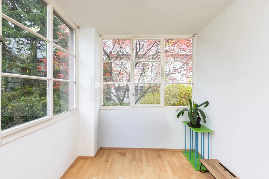 Dispozice bytu: Po vstupu do bytu se ocitnete v prostorné vstupní hale, ze které je přímý vstup do kuchyně, jednoho z pokojů a dále do druhého pokoje. Z haly dále navazuje chodba vedoucí do zimní zahrady, koupelny, samostatného WC. K dispozici je také praktická, prostorná spíž.