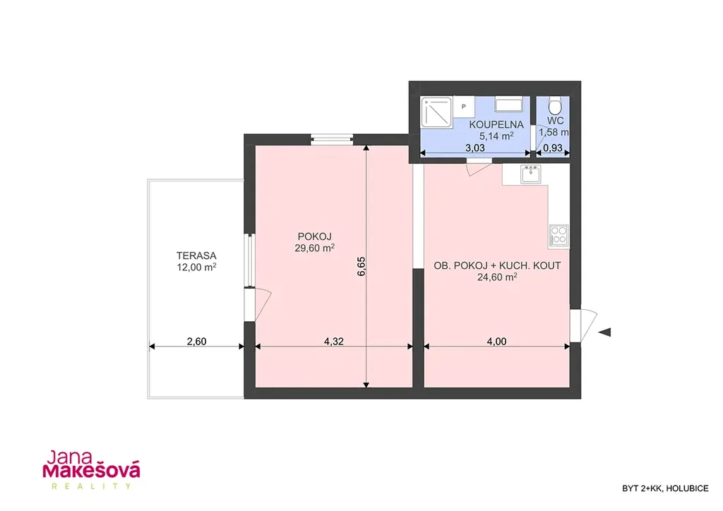 Cihlový byt 2+kk, Holubice, CP 91 m2, s terasou a parkovacím místem, které se nachází pouhých cca 14 km východně od Brna.