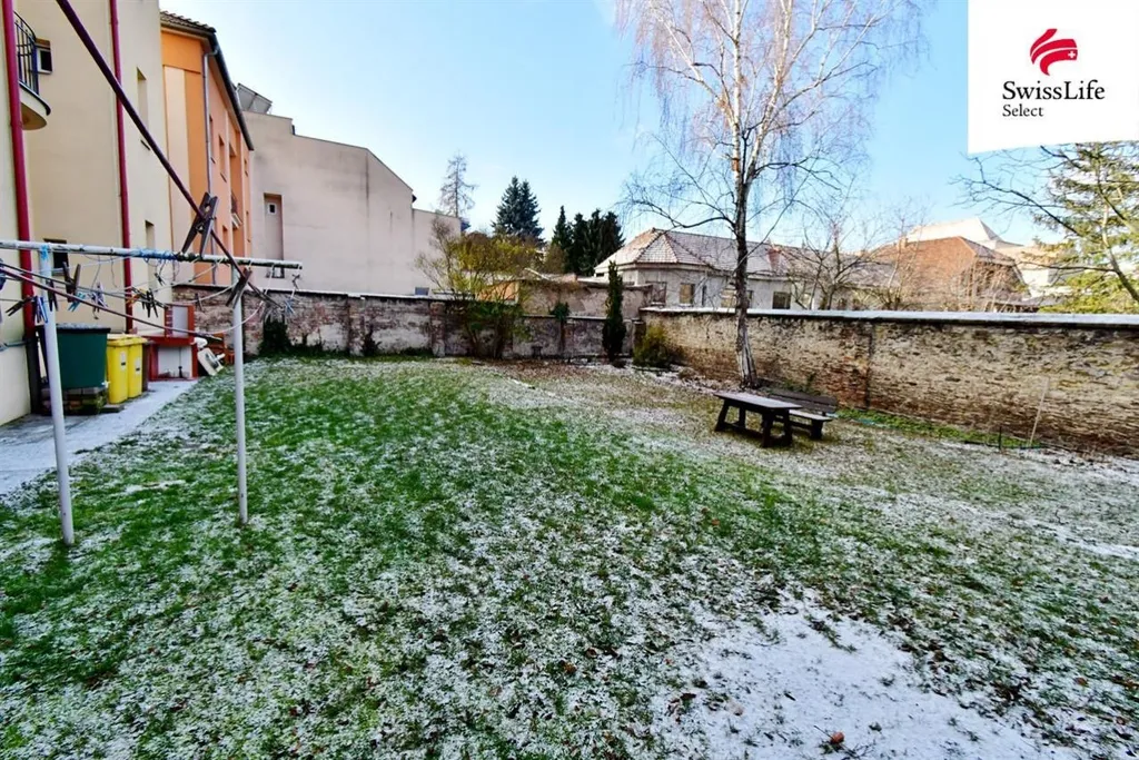 Součástí prodeje je také spoluvlastnický podíl na uzavřeném dvoře se zelenou travnatou plochou určenou výhradně pro obyvatele domu. K bytu patří dva sklepy.