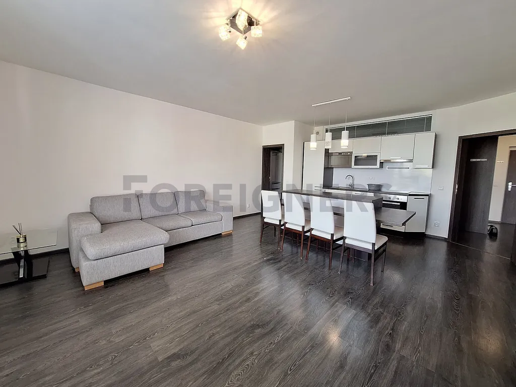 Měsíční nájem plně zařízeného bytu je 19 000 Kč plus 3 907 Kč za služby, vodu, topení, zálohy na elektřinu.