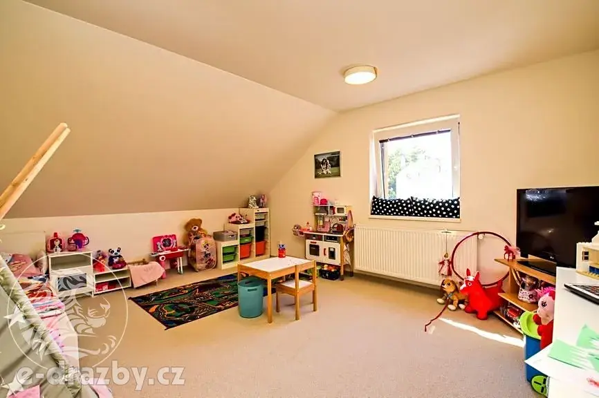 Z obývacího pokoje je přímý vstup na zahradu, což oceníte zejména v letních měsících. Dílna disponuje vstupem na půdu.