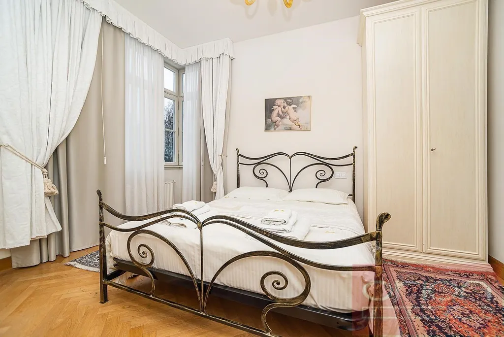 Kompletně zařízený luxusní byt 2+kk v 1. patře zrekonstruovaného domu s výtahem, v atraktivní lokalitě Prahy 2 - Vinohrady. Interiér bytu s celkovou plochou 72 m2 tvoří vstupní chodba, obývací pokoj spojený s vybaveným kuchyňským koutem, ložnice, koupelna s vano, bidetem, pračkou a toaletou. K vybavení bytu patří TV, satelit, klimatizace, videotelefon, ostraha 24 hod. denně. Nájemníkům je k dispozici bazén ve vnitrobloku, sauna a soukromá zahrada. Dům se nachází ve velice pěkné lokalitě Vinohrady, je zde veškerá občanská vybavenost a výborná dopravní dostupnost autem i MHD. Stanice metra linky A Náměstí Míru a tramvajové zastávky jsou pár metrů, zastávka autobusu je přímo u domu. Příjemnou procházkou lze dojít do oblíbeného parku Riegrovy sady nebo na Václavské náměstí. Okolí nabízí restaurace, kavárny, obchody, kulturní zařízení a další služby. Možnost pronájmu parkovacího místa v garáži od 400 EUR + DPH měsíčně.