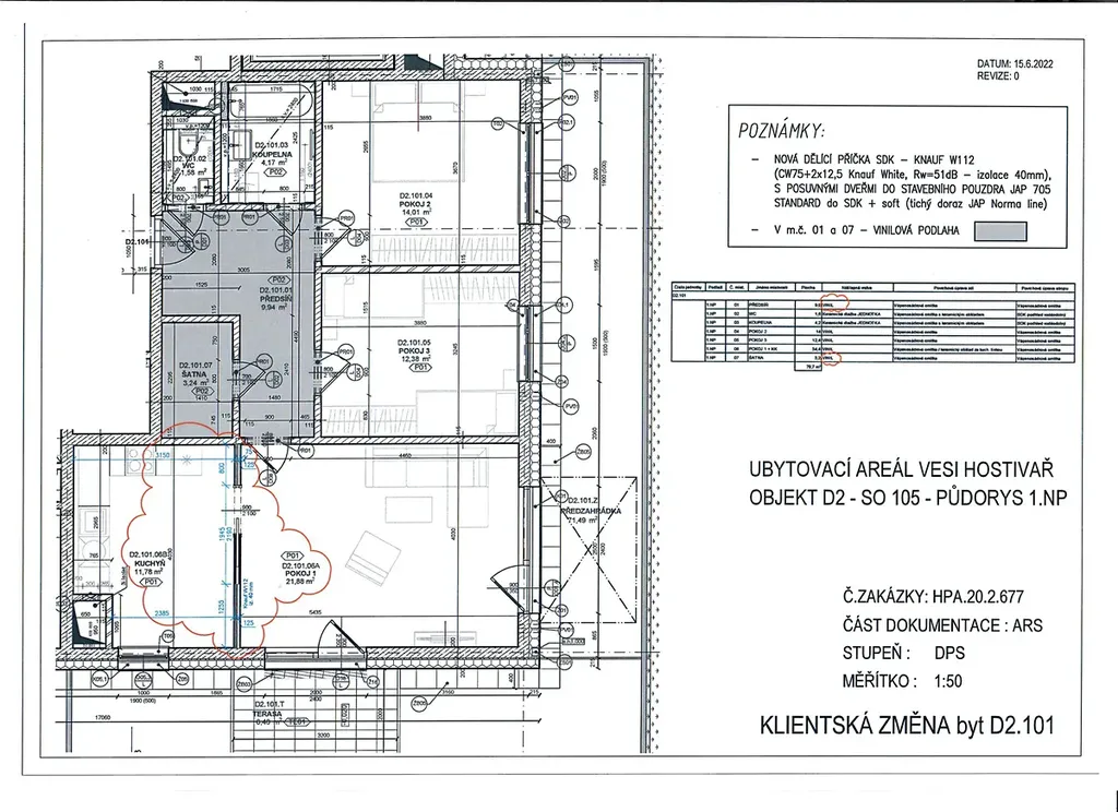 Původně byla jednotka koncipována jako 3+kk, ale v rámci klientských změn byla developerem upravena na 3+1 - možnost úpravy zpět na 3+kk.