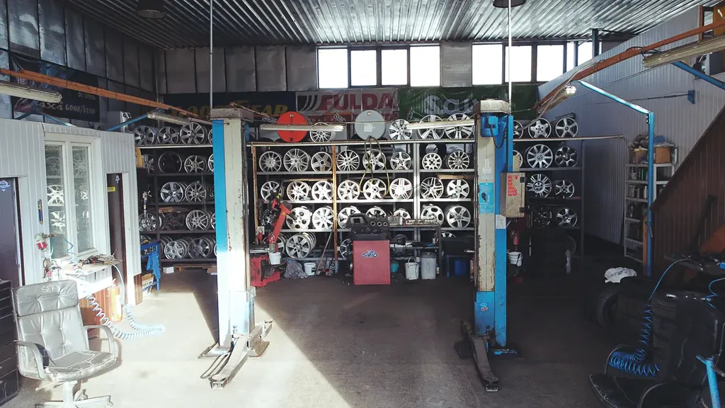 - kompletní vybavení ( 2 x přezouvačka, 1 x vyvažovačka, 1 x kompresor, 2 x pneu utahovák, zvedák do 3 t, veškeré nářadí a nástroje, regály)