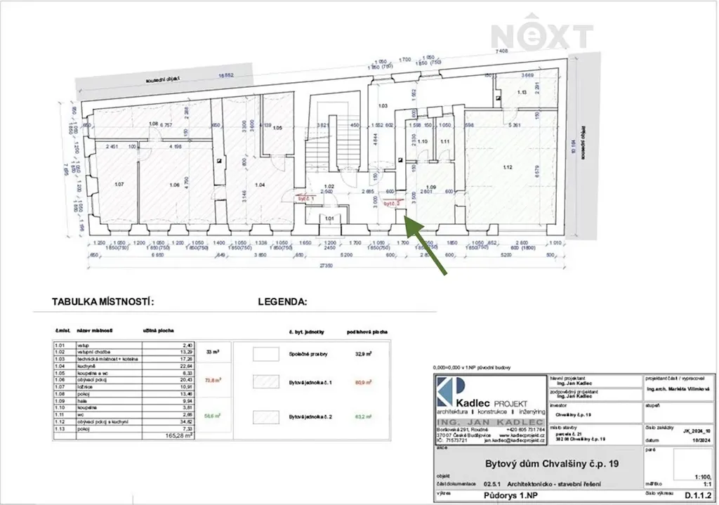 Dům má tři nadzemní podlaží: 1. NP (přízemí), 2. NP (1. patro), 3. NP (obytné podkroví). Celkem je v domě šest bytových jednotek. Dům prošel kompletní rekonstrukcí a všechny byty byly plně zrekonstruovány. Objekt je navíc celý podsklepený, takže nabízí dostatek úložného prostoru pro obyvatele.