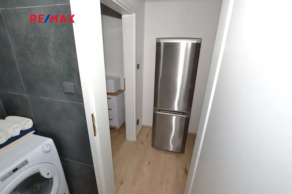 Byt je plně vybaven spotřebiči a potřebným nábytkem. Kuchyňská linka je s el. sklokeramickou varnou deskou, el. multifunkční troubou a myčkou nádobí. V koupelně je zděný sprchový kout a toaleta, k dispozici je pračka. Lednice je v chodbě bytu. K dispozici je praktická šatna přímo v bytě.
