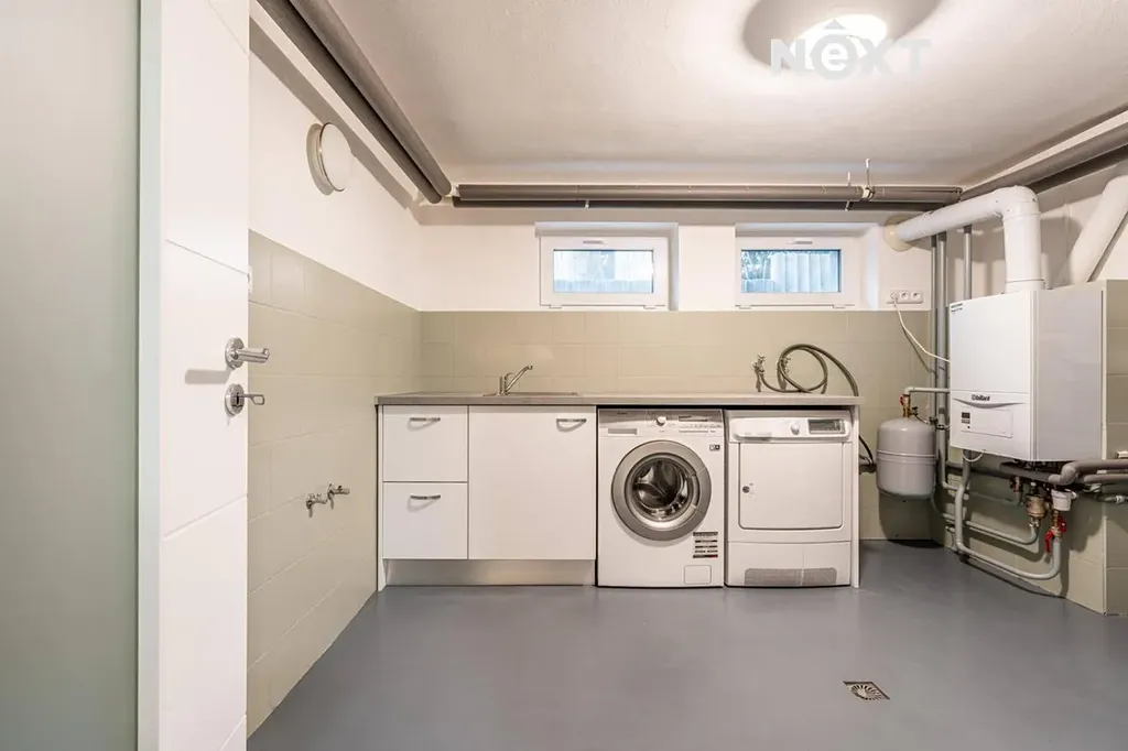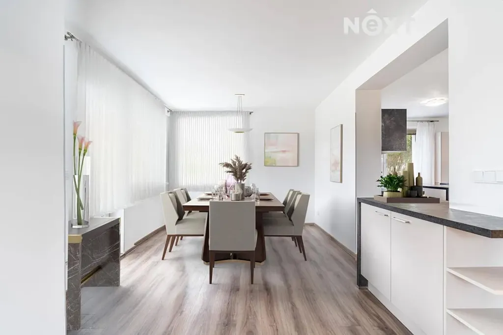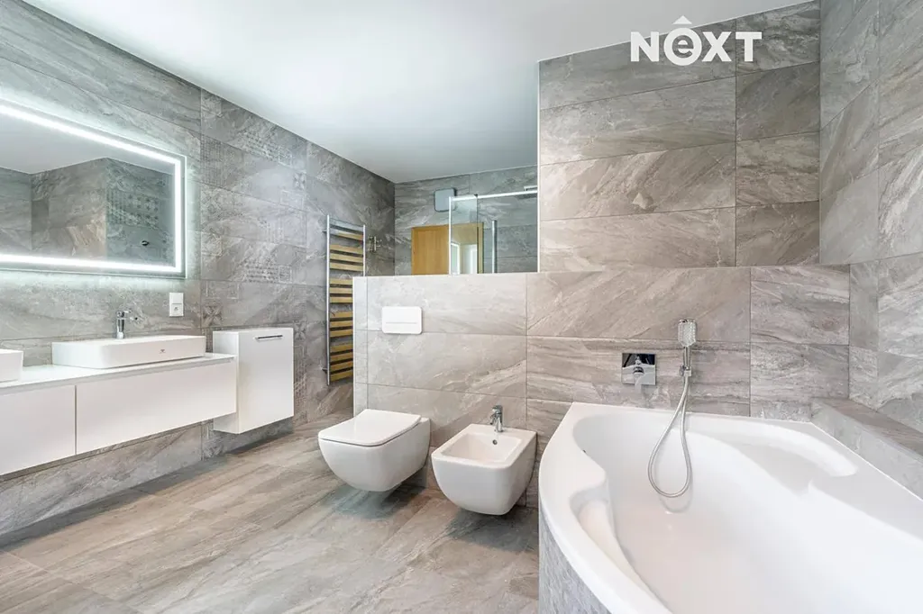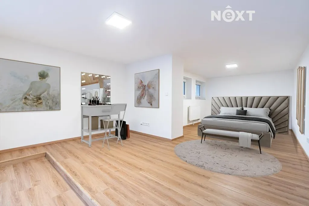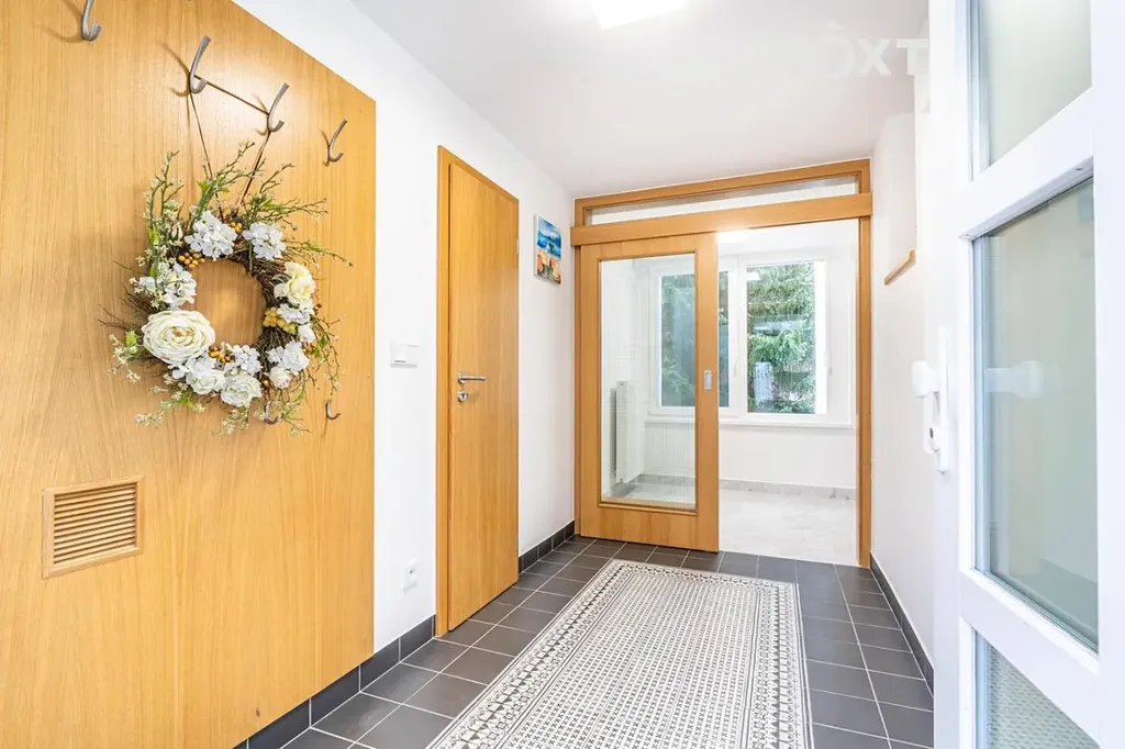 Dům prošel kompletní rekonstrukcí – nové rozvody elektřiny, vody a odpadů, podlahové vytápění v koupelnách, moderní spotřebiče a zabezpečovací systém.