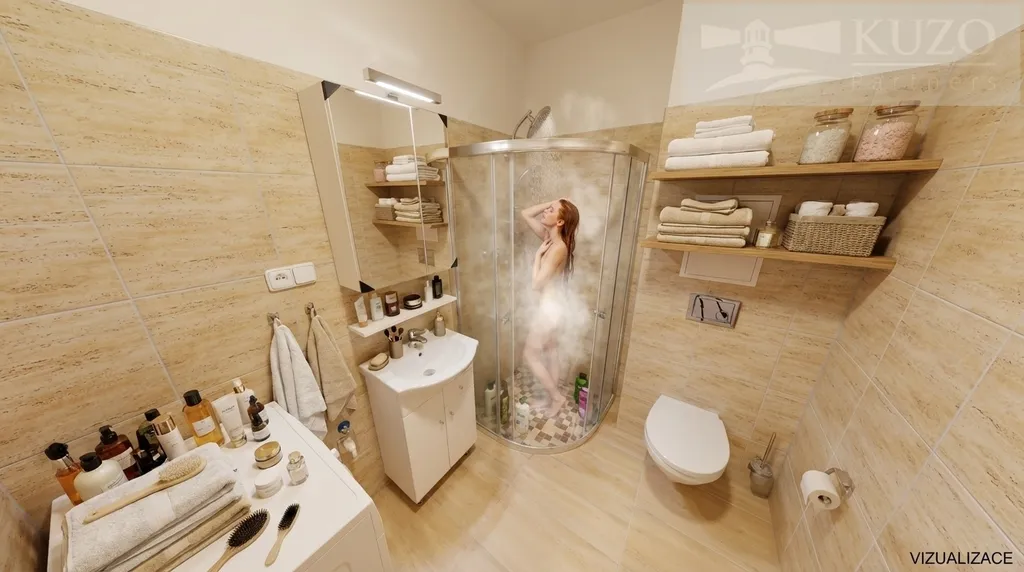 Koupelna se sprchovým koutem a WC