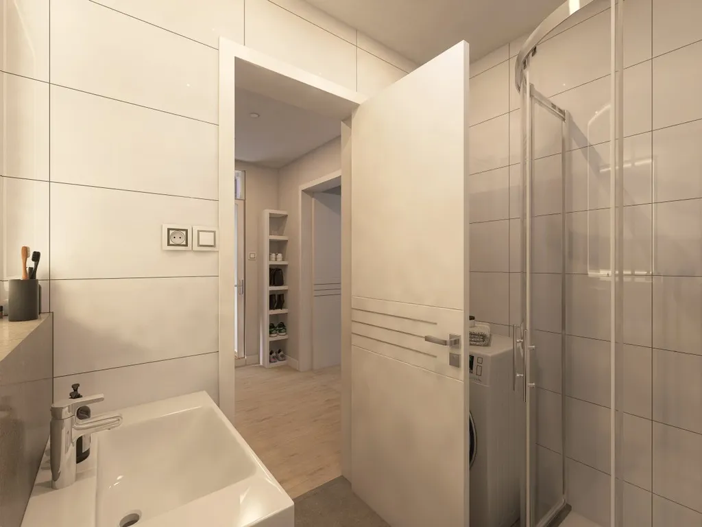 Interiér bytu je navržen s důrazem na funkčnost a čistý moderní design. Byt se nabízí plně vybavený dle vizualizací, které odpovídají plánovanému finálnímu stavu. Kuchyňská linka je vybavena dřezem, lednicí, dvouplotýnkovou varnou deskou, digestoří a mikrovlnnou troubou. Součástí bytu jsou dále úložné prostory i kompletní zařízení obytné části. Byt je ideální pro jednotlivce nebo pár, kteří hledají praktické a kvalitní bydlení v klidném prostředí s dobrou dostupností do centra města.