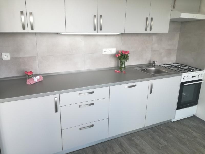 Kuchyňská linka je opatřena plynovým sporákem a elektrickou troubou as možností připojení myčky. Byt disponuje i komorou.