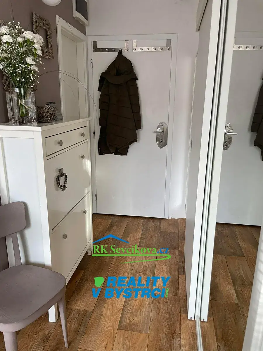Na podlahách je PVC, v obývacím pokoji parkety.