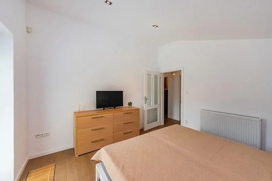 Nemovitost se stává ze vstupní předsíně, prostorného obývacího pokoje s krbovými kamny a kuchyní, pokoje, ložnice, koupelny se sprchovým koutem a samostatné WC.