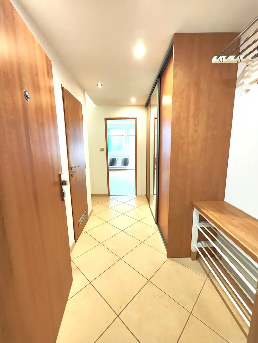 Bytová jednotka má vstupní chodbu, ve které je umístěna prostorná šatní skříň, botník a věšák. Dále se z chodby vstupuje do dvou samostatných pokojů (podlahy jsou dřevěné), koupelny a na WC.