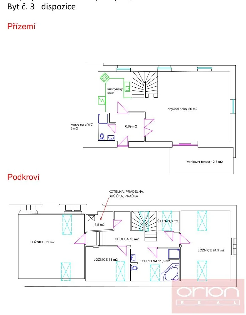 Nabízíme k pronájmu stylový prostorný mezonetový byt 4+kk (170m2) s terasou, společnou zahradou s charakterem rodinného domu ve vyhledávané lokalitě Praha 2 - Vinohrady. Nezařízený byt nabízí v přízemí vstupní chodbu s vestavěnou skříní, prostorný obývací pokoj (56 m2) s jídelnou se vstupem na terasu, plně vybavenou kuchyň, koupelnu se sprchovým koutem a toaletu. V patře jsou 3 ložnice, koupelna se sprchovým koutem, vanou a toaletou, šatna, prádelna se sušičkou a pračkou. K dispozici je společná zahrada. K vybavení bytu patří SAT, internet, plynový kotel, podlaha v přízemí a koupelně má podlahové vytápění. Kamerový systém okolo budovy. V blízkosti se nachází anglická základní škola a školka. Byt je umístěn v klidné lokalitě přímo v parku Gröbovka. Lokalita s veškerou občanskou vybaveností, obchody, restauracemi, kavárnami. Výborná dopravní dostupnost autem i MHD, pouhých pár minut pěšky na stanici tramvaje nebo stanici metra Náměstí Míru.