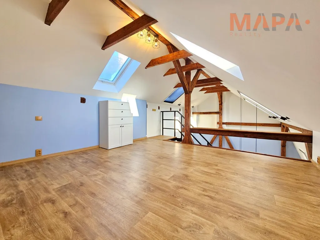 Mezonetový byt 3+1 s jedinečným charakterem, krbem a otevřeným prostorem.