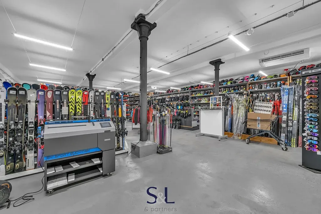 skladové a výrobní prostory, dílenské prostory, nebytové prostory, bytová jednotka, garáže a zavedená prodejna lyžařského vybavení.