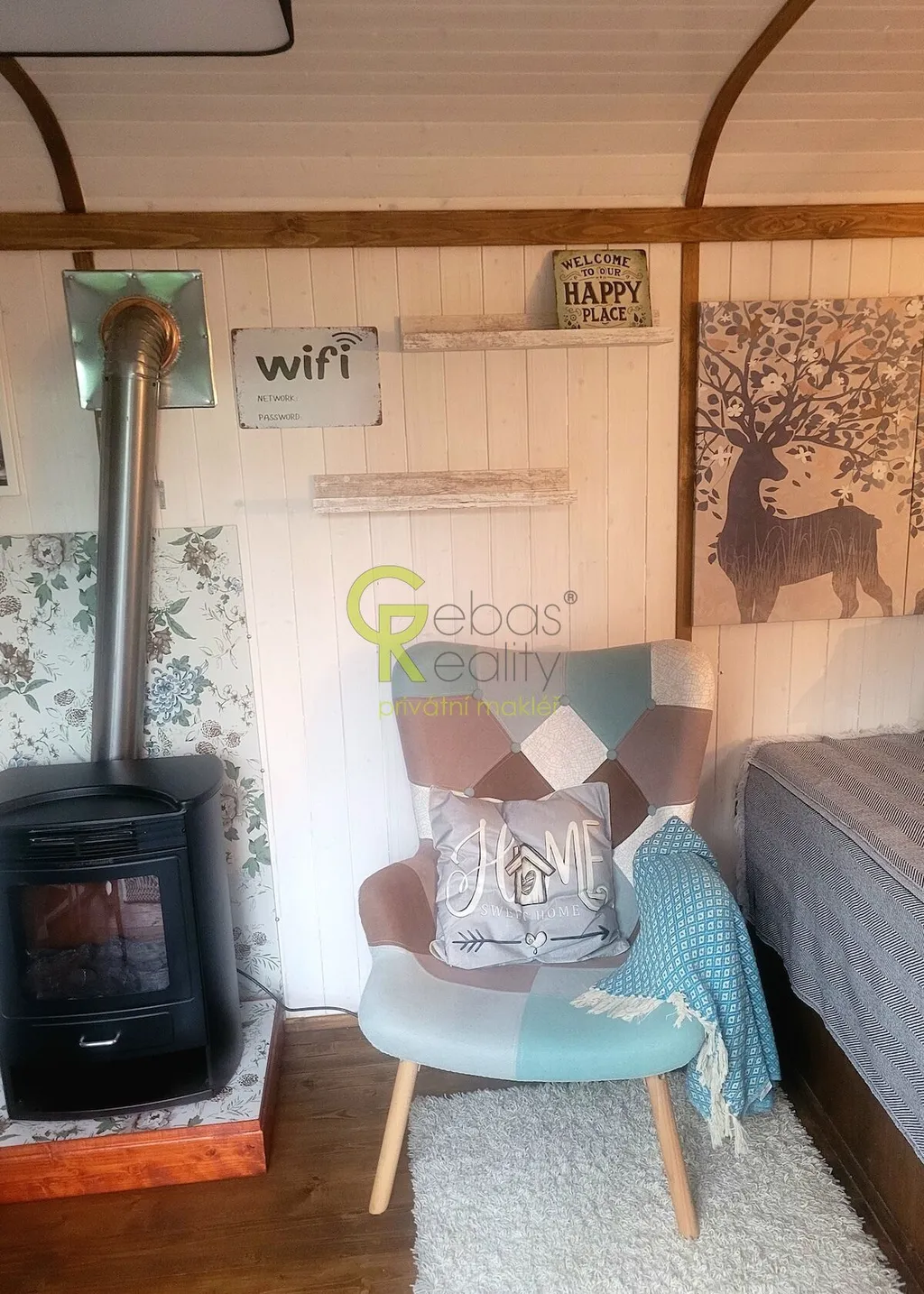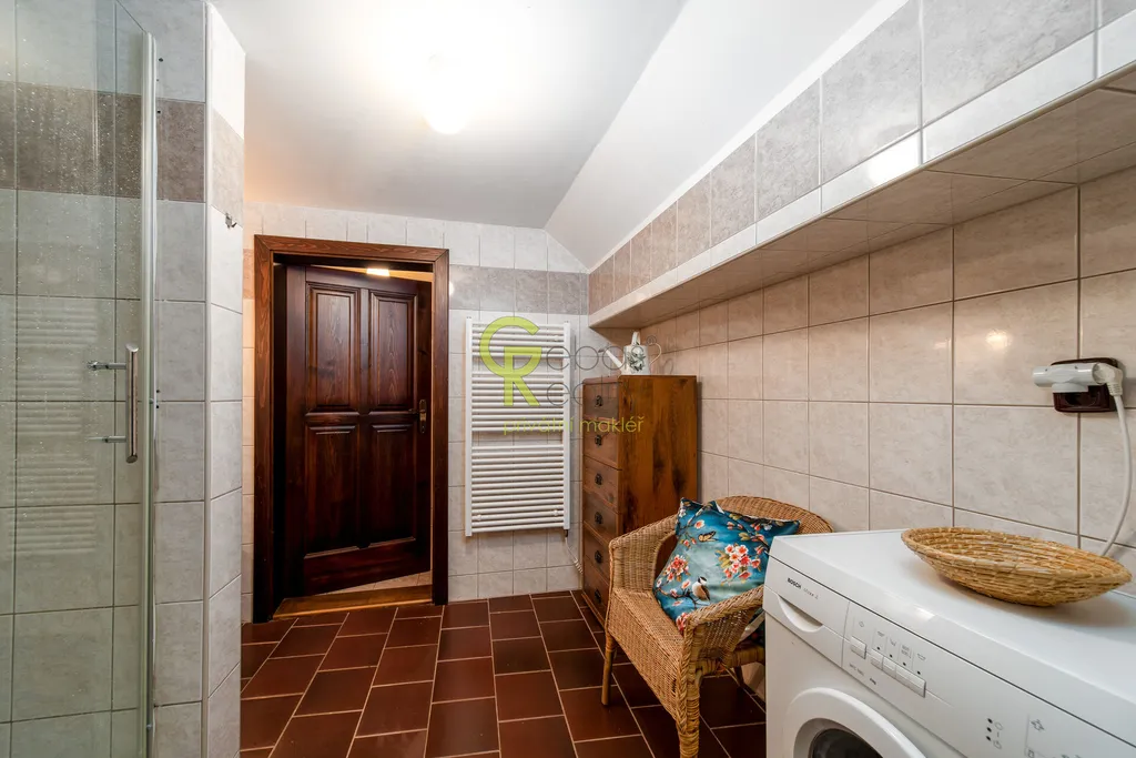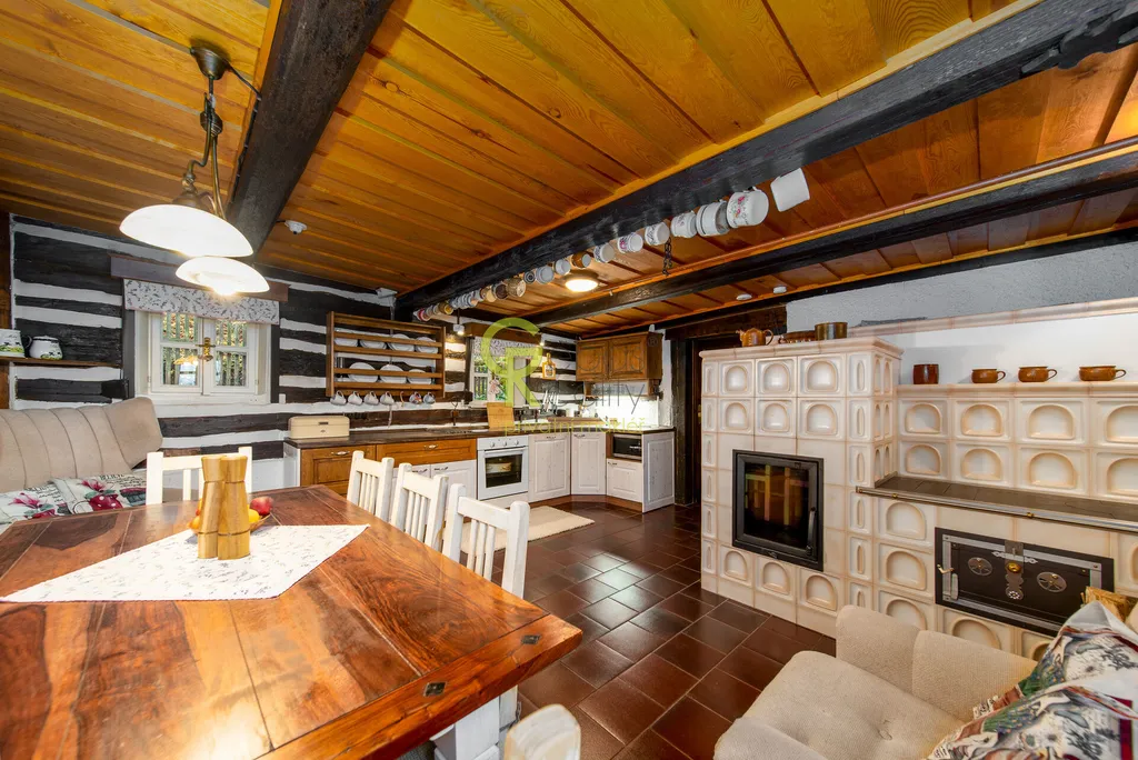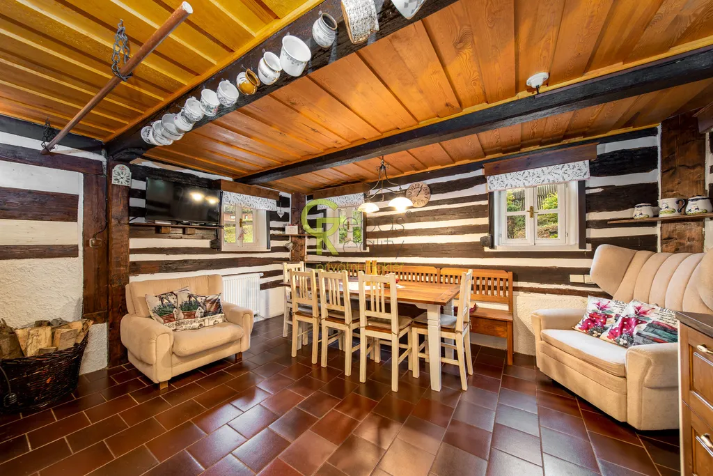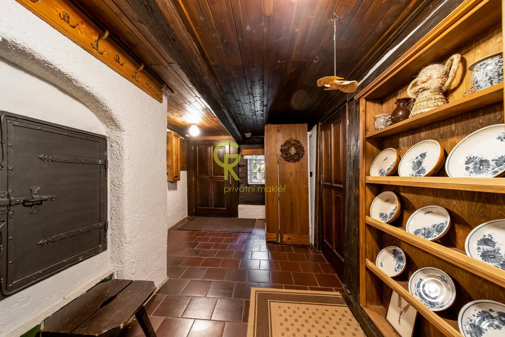 Interiér roubenky nabízí autentickou chalupářskou atmosféru. K dispozici je plně vybavená kuchyň s jídelní částí a masivní akumulační pecí se spací plochou, dvě samostatné neprůchozí ložnice, každá s vlastním krbovým topidlem, obývací průchozí pokoj, vstupní chodba, koupelna se sprchovým koutem a samostatné WC. Dům je napojen na obecní vodovod, na pozemku je také studánka či okrasné jezírko. Vytápění je řešeno elektrickým kotlem s možností dálkové regulace, alternativně krbovými kamny v každé z ložnic a pecí v hlavní místnosti. Kanalizace je formou jímky. Podlahy jsou dřevěné a dlažba s podlahovým vytápěním, okna stylová špaletová s bezpečnostními roletami. Dům je napojen na PCO, internet i mobilní signál bez omezení. Parkování je možné minimálně pro tři vozidla u domu, přístup po obecní, celoročně udržované komunikaci.Součástí prodeje je také samostatně umístěná celoročně obytná maringotka dle vlastního návrhu a realizace od lemované společnosti, citlivě zasazená do zahrady s vlastním vstupem a parkováním tak, aby bylo zachováno soukromí obou objektů. Maringotka je plně vybavená (v koupelně sprch. kout, WC, teplá voda, topný žebřík, kuchyň včetně lednice, sklokeramické desky, trouby, mikrovlnky, kávovaru a veškerého kuch.vybavení) má vlastní zázemí a terasu a je velmi úspěšně využívána ke krátkodobým pronájmům zaměřeným na klientelu vyhledávající netradiční pobyt v přírodě.Celý soubor nemovitostí je ve výborném technickém stavu, bez nutnosti dalších investic a je možné jej okamžitě užívat nebo převzít jako zavedený ubytovací projekt.K dispozici ihned. Pro více informací nebo domluvení termínu osobní prohlídky nás neváhejte kontaktovat. Rádi se Vám budeme věnovat. (PENB – G)
