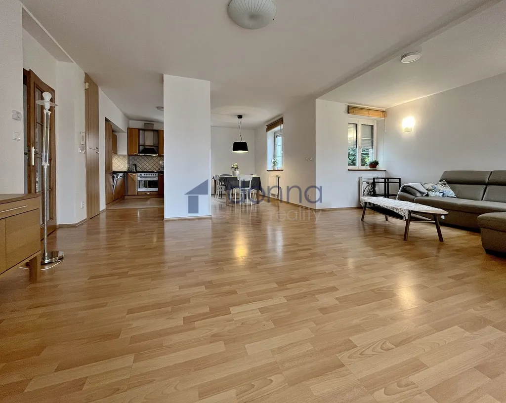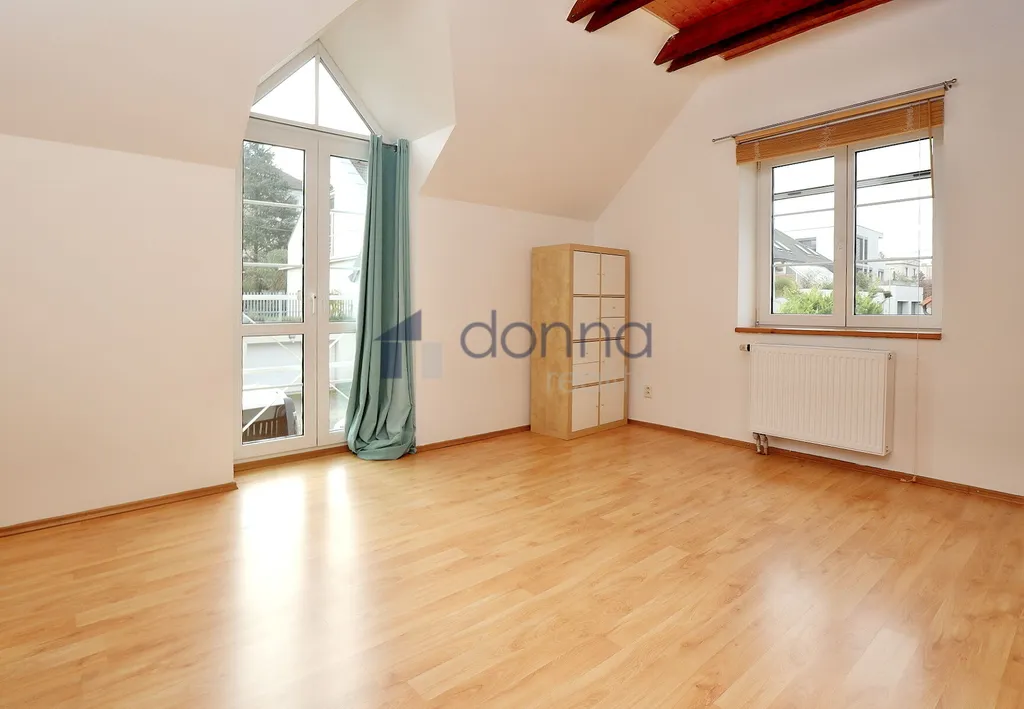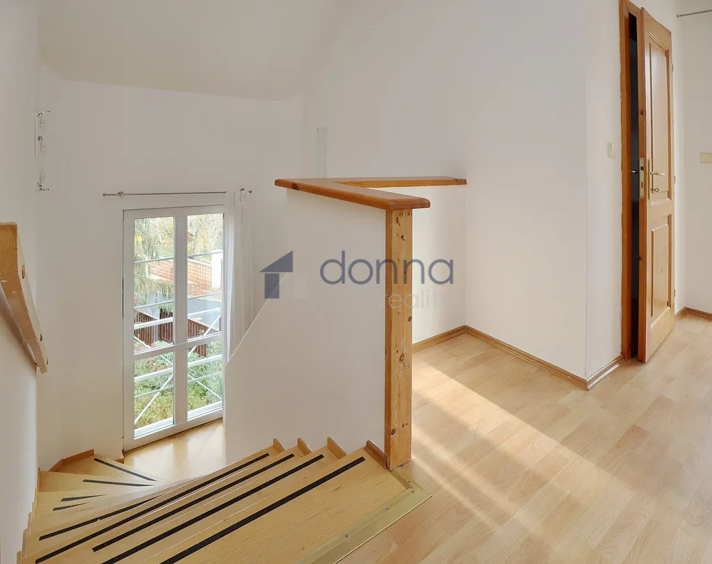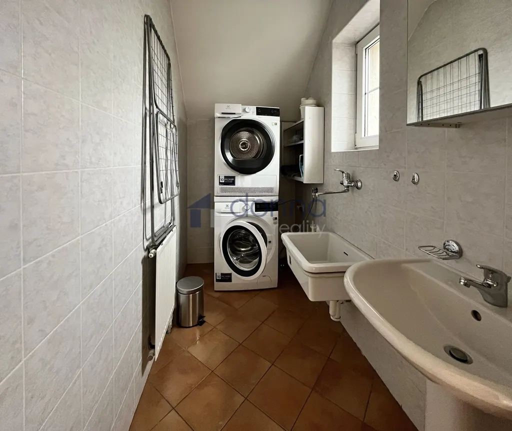 Nabízíme k pronájmu samostatný rodinný dům 5+kk, plocha cca 186m2, pozemek celkem 550m2, v ulici K Beránku, Praha 4 - Modřany. V přízemí domu se nachází velmi prostorný obývací pokoj s kuchyňským koutem (45m2) a zimní zahradou (14m2), ze které je vstup na terasu a zahradu, dále se v přízemí nachází koupelna se sprchovým koutem a toaletou a ložnice 12m2. Kuchyňský kout je vybavený lednicí s mrazákem, myčkou, varnou deskou, troubou, mikrovlnnou troubou a kávovarem, částečně zařízeno nábytkem, v hale vestavěné skříně, vstup do sklepa (10m2), kde je umístěn plynový kotel. V patře domu 3 samostatné ložnice, v jedné z nich schodiště do půdního prostoru. koupelna s vanou a toaletou, úklidová místnost vybavená pračkou a sušičkou. Plovoucí podlahy a dlažba, plastová okna se sítěmi proti hmyzu, v přízemí instalovány předokení rolety, alarm. Okrasná zahrada poskytující dostatek soukromí, garáž až pro 2 vozy, pod níž se nachází další skladové prostory.