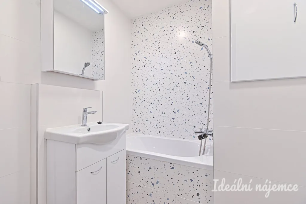 Byt se nabízí vybavený dle fotografií. Obytná část je světlá a prostorná, ložnice poskytuje dostatek místa pro postel i úložné prostory. Koupelna je vybavena sprchovým koutem, umyvadlem a toaletou.