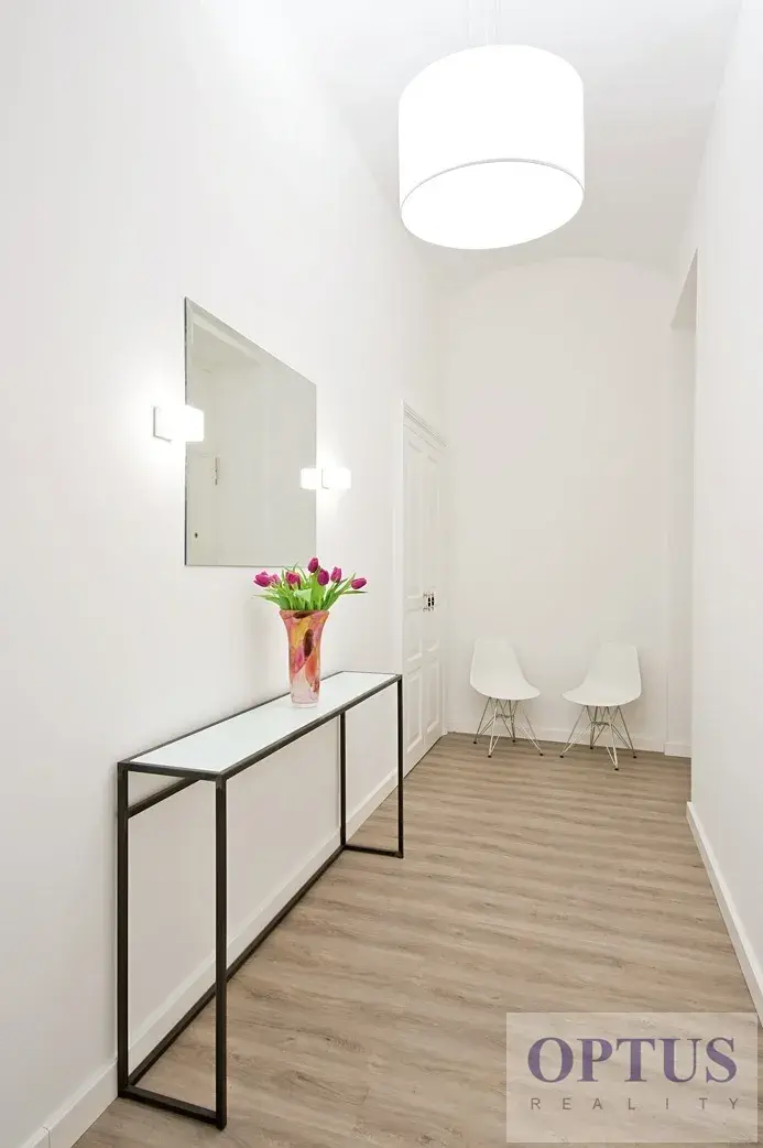 Nabízíme luxusní kancelářské prostory o velikosti cca 115 m2 po nadstandardní rekonstrukci z r. 2021, situované v 1. patře secesního domu rovněž po kompletní rekonstrukci. Prostory zahrnují vstupní halu s vestavěnou skříní, kancelář / showroom o velikosti 52,6 m2, zasedací místnost 17,7 m2 se vstupem na balkon, dvě samostatné kanceláře 7,2 m2 a 5,6 m2 a dále kuchyňku a samostatné WC.
